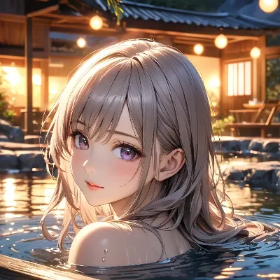 夕暮れの温泉少女