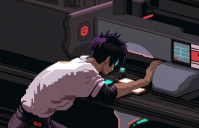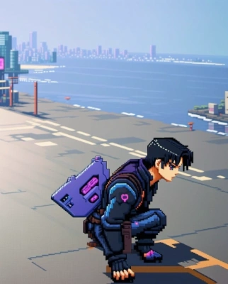 AIパワーで写真\"体育座り“をニューレトロサイバーパンク化