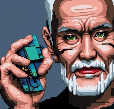 イーサリアムを手に持つオッサン\"で生成した画像をニューレトロサイバーパンク化