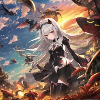 夜の海辺ではしゃぐうさ耳セーラー少女