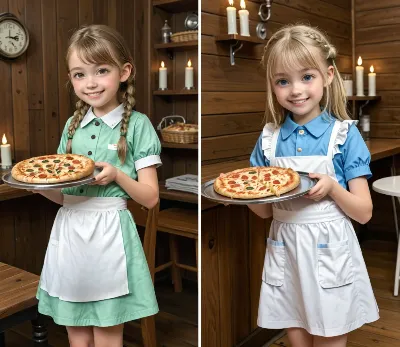 パンケーキを運ぶ猫耳メイドちゃんです。
