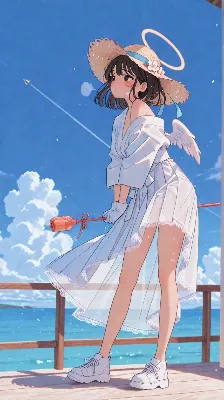 海辺の天使少女