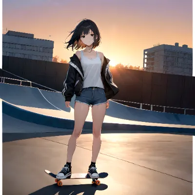 渡辺葵ちゃん、大学生モデルのスケートボード撮影