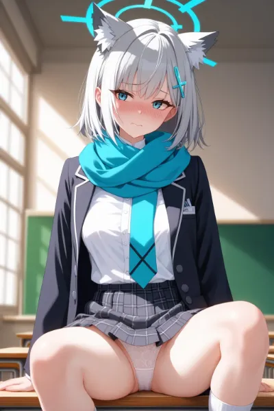 ブルーアーカイブ_砂狼シロコ 恥ずかしがりながらパンツ見せ