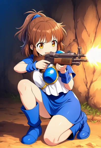 マシンガンをぶっ放すアルル