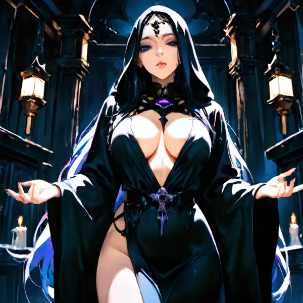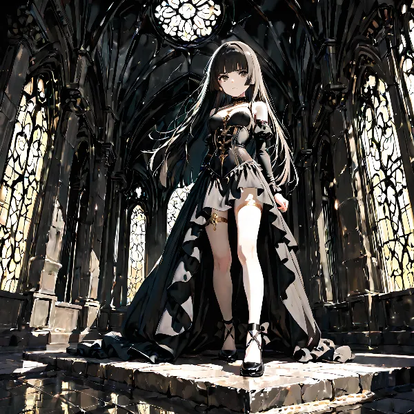 闇の聖堂に佇む黒髪の魔女