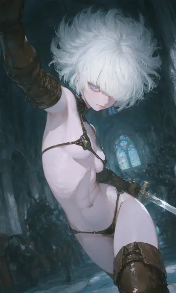 影の聖堂に舞う白髪の剣士