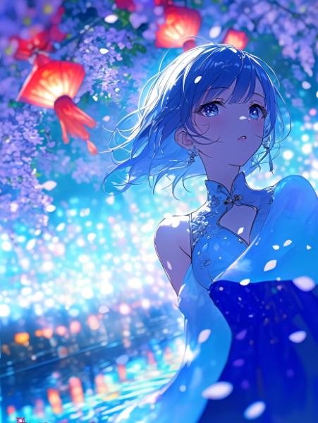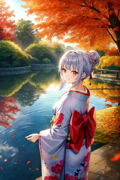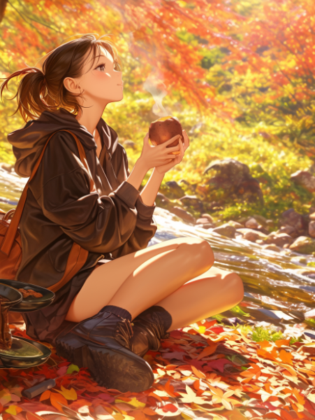 花、少女、水辺にて