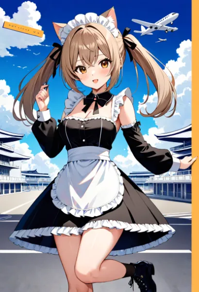 猫耳メイドの空港大冒険(チャットaiしみこ飛行機の日コーデ)