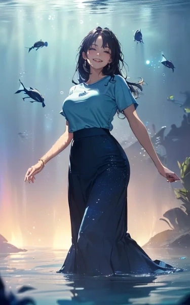 紺桔梗色と水の形を楽しむ美女