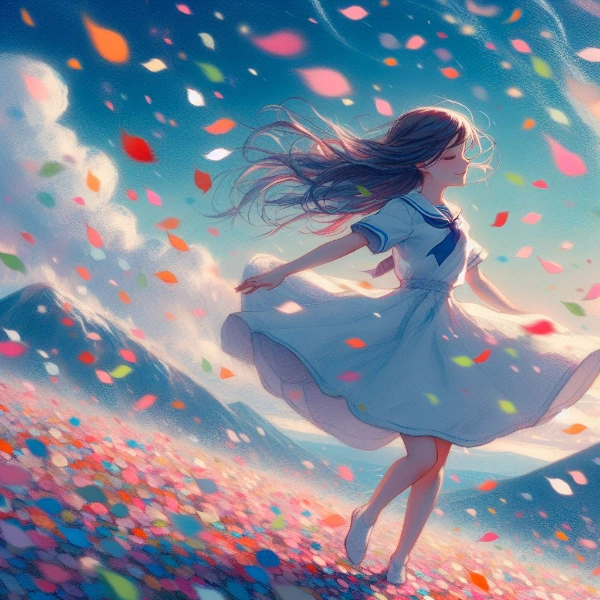 舞う花びらと少女