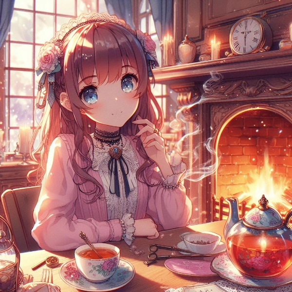 女子と暖炉