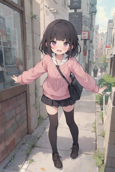 休日に街で私服の
