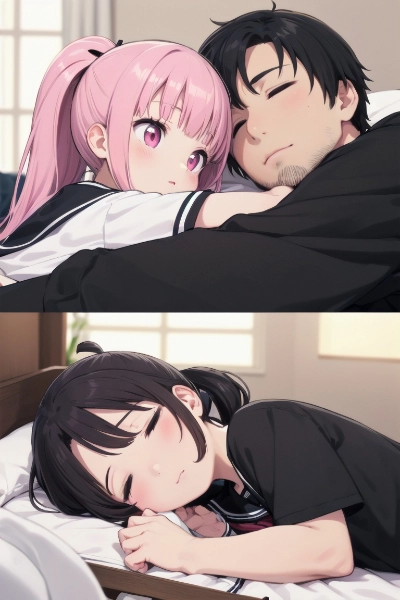 お父さんと寝るもん