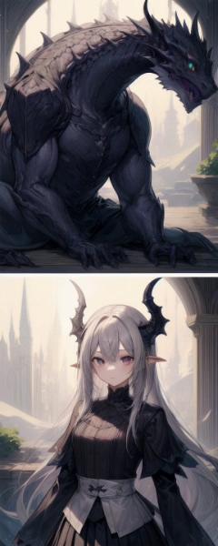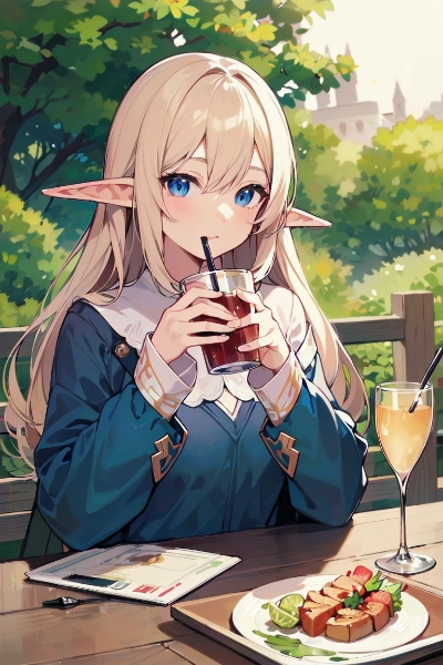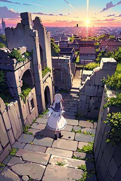 廃墟の国のエルフ 夕日の空を仰ぐ