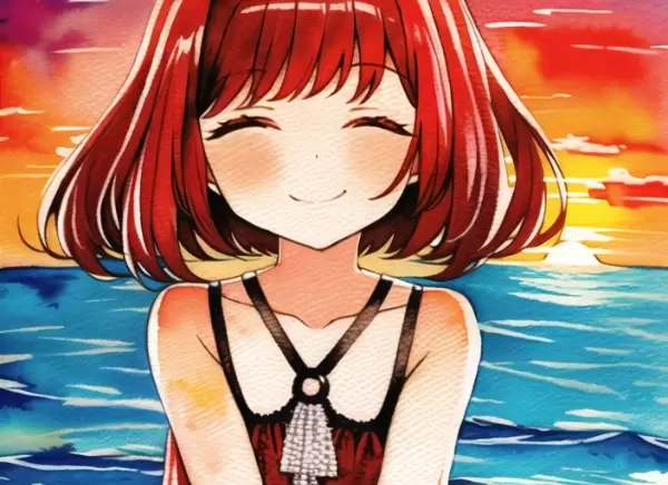 夕焼けを背に笑う女の子
