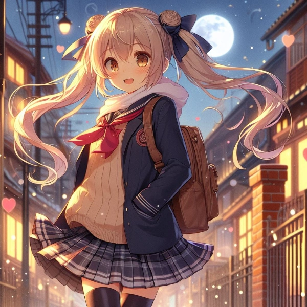 月明かりの下で、彼女は静かに耳を澄ませた。「また明日」と、夜の静寂に約束するように呟いた。