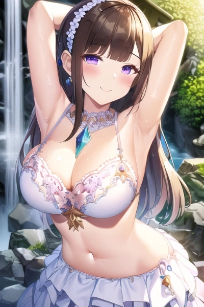 水浴びにてお嬢様の豊満なバストがあらわにタジタジの図