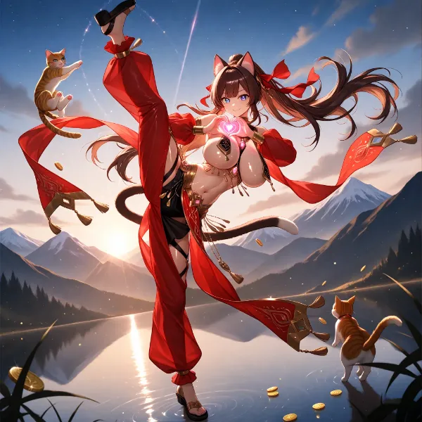 (自動生成タイトル) 秋の和室で猫耳少女と猫たち