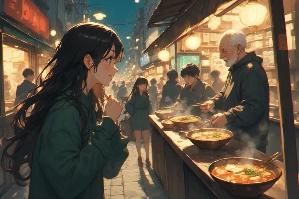 夜の屋台で紡がれる温かな出会い