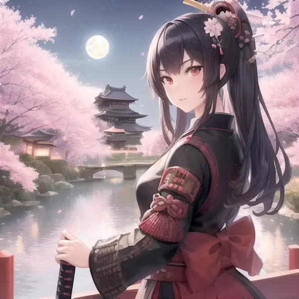 月と夜桜