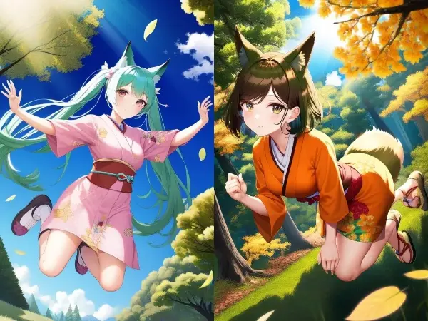 木立もえ、木立めばえ、妖狐の仲良し二人組