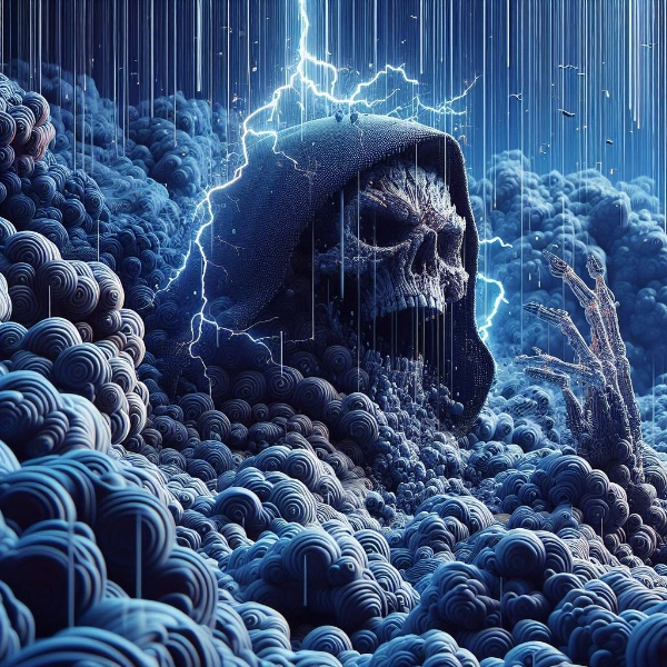 雷と雨を抽象的に表現した3DCGのアート