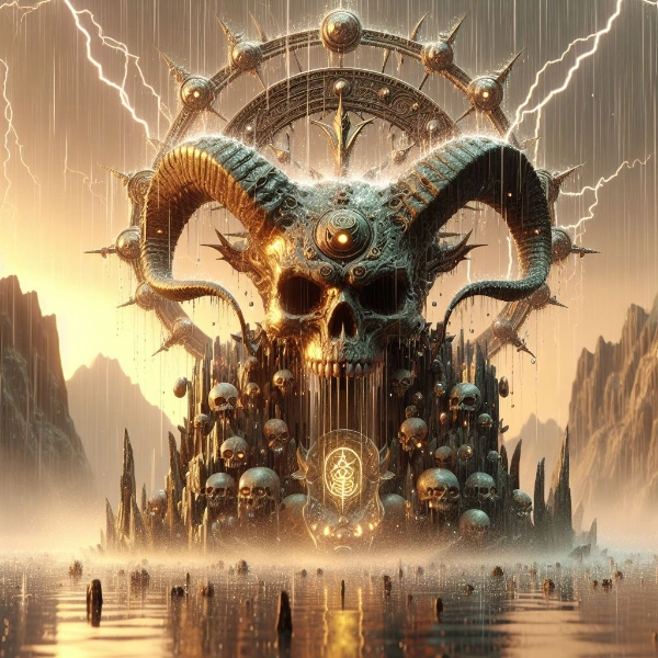 雷と雨を記号的に表現した3DCGのアート