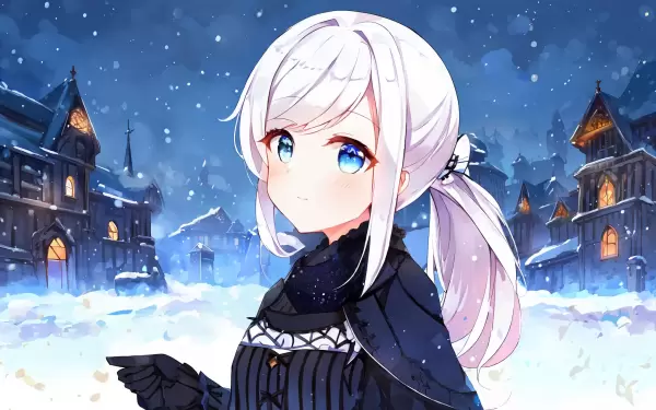 雪を捕まえる少女