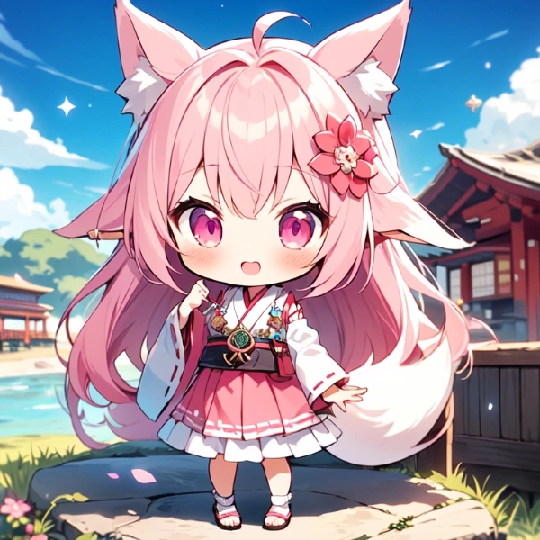 設定資料集。うちの子。ピンクの狐巫女さん。