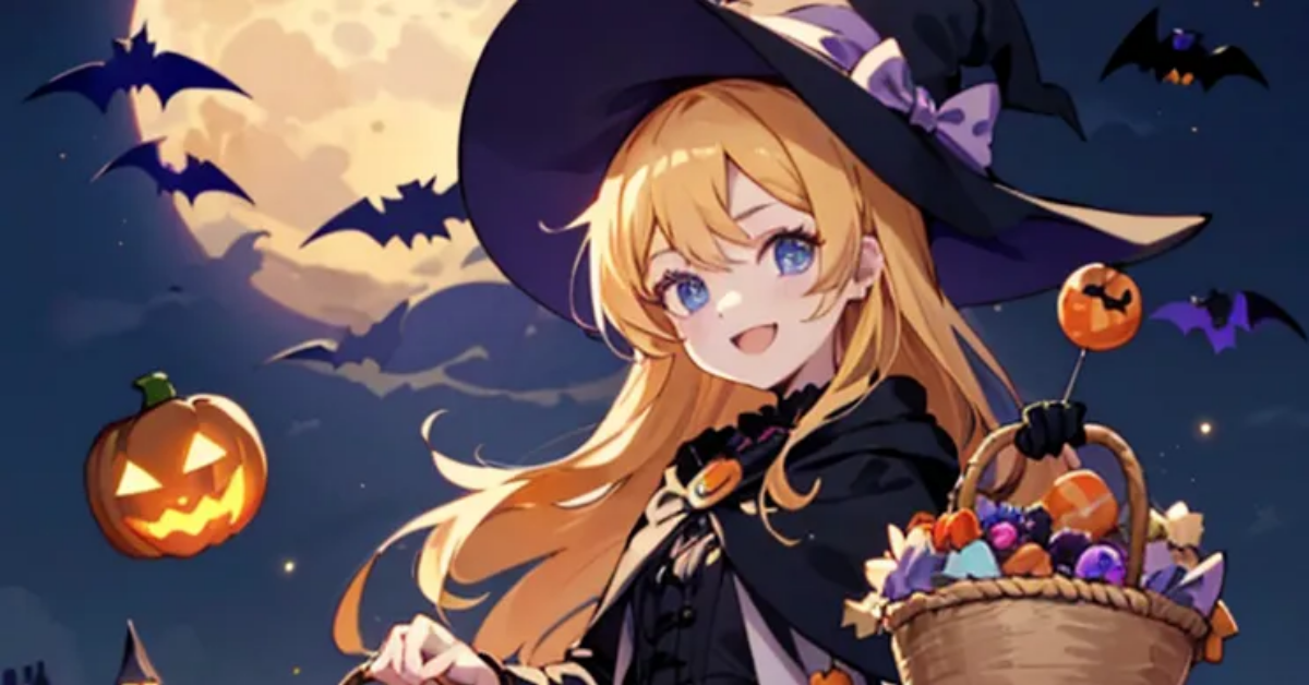 ハロウィンパレードの待ち合わせをする魔女っ娘