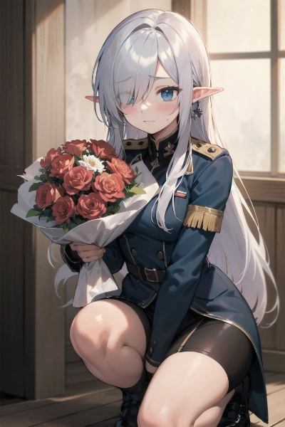 花束を片手に告白するエルフさん
