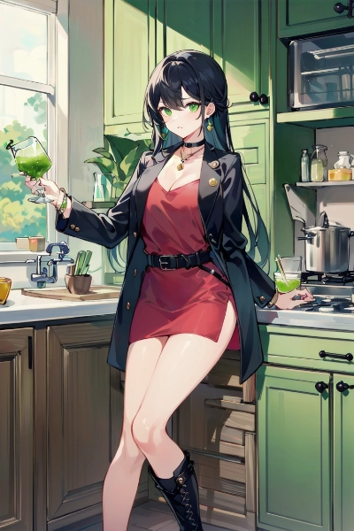 仕事に行く前に、青汁を飲む女性。