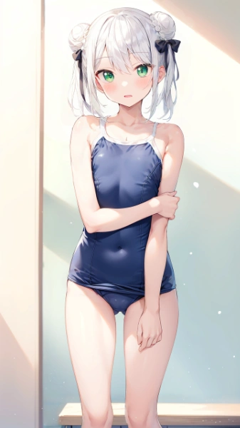 白髪緑目少女の水着Ver