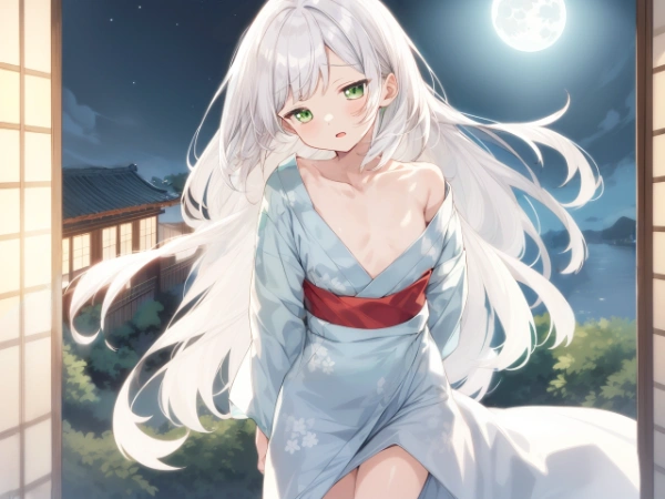 白髪緑目少女の浴衣Ver. 立ち絵