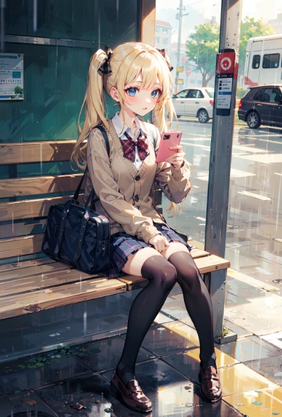 雨のバス停