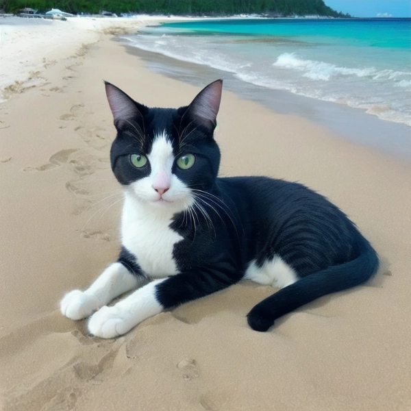 どこにでも猫がたくさんいます そこには猫だけがいます 猫の世界 青い海、白い砂浜、ビーチでの休暇、リラックス、オープン、穏やか