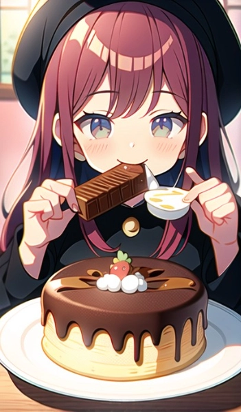 ガトーショコラを食べながら幸せそうに笑うぽっちゃり系女子