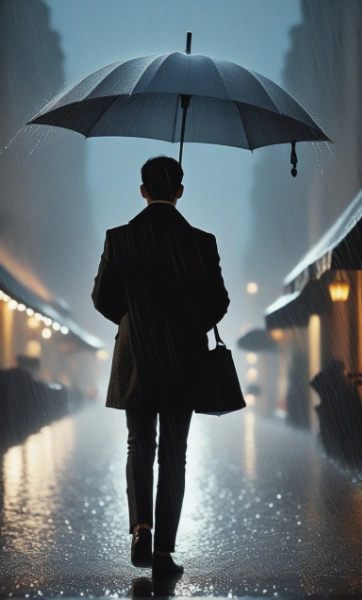 雨☔の中を1人で歩く男性🚹🚶♀️